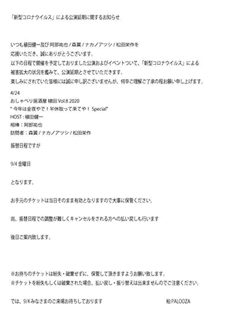 尚、蜜を避けるため、演者さんも一部変更となっております。