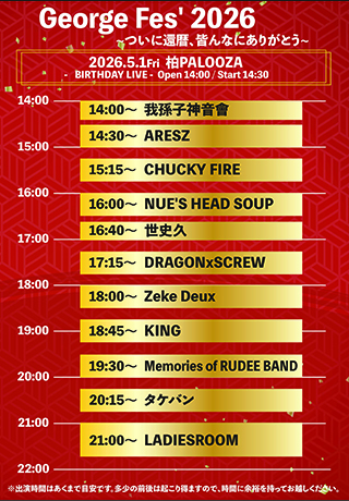 Zeke Deux / タケバン / KING / 世史久 / CHUCKY FIRE / DRAGONx SCREW / NUE'S HEAD SOUP / Memories of RUDEE BAND / ARESZ