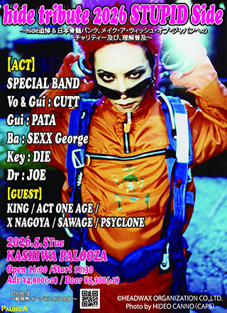 タイトル:hide tribute 2026 STUPID Side 〜hide追悼 & 日本骨髄バンク、メイク・ア・ウィッシュ・オブ・ジャパンへのチャリティー及び、理解普及〜